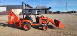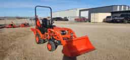 USED KUBOTA BX23SLSB-R14-1 TRACTOR-LOADER-BACKHOE, 4WD, R14 TIRES, 48″ LDR BUCKET, BOLT ON CUTTING EDGE, 16″ BH BUCKET, THUMB KIT, 3PT, BUCKET LEVEL INDICATOR, BLOCK HEATER, 230 HOURS